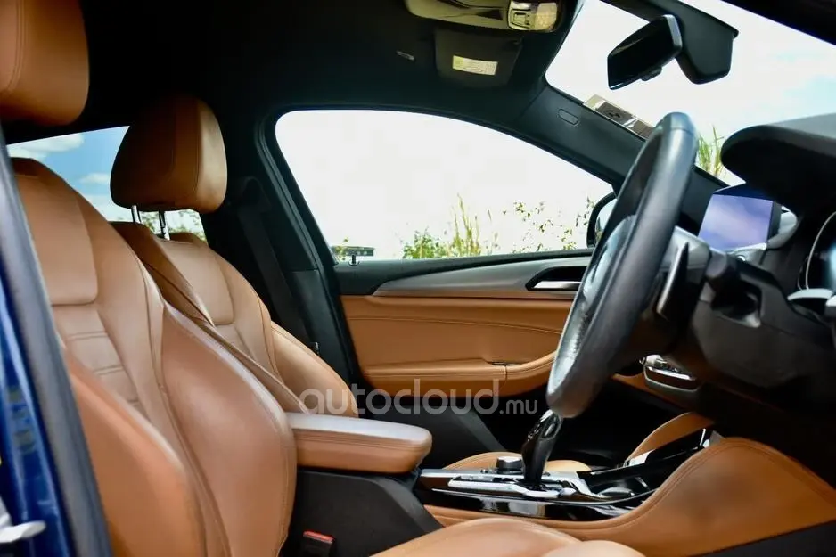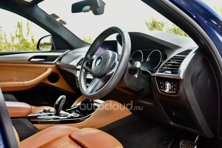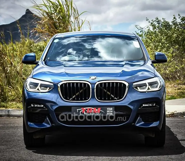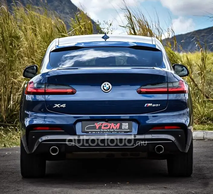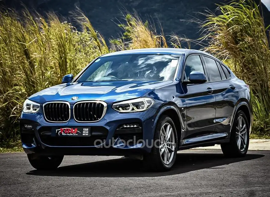 Finished in a striking blue exterior, the BMW X4 commands attention with its coupe-like silhouette and muscular stance.