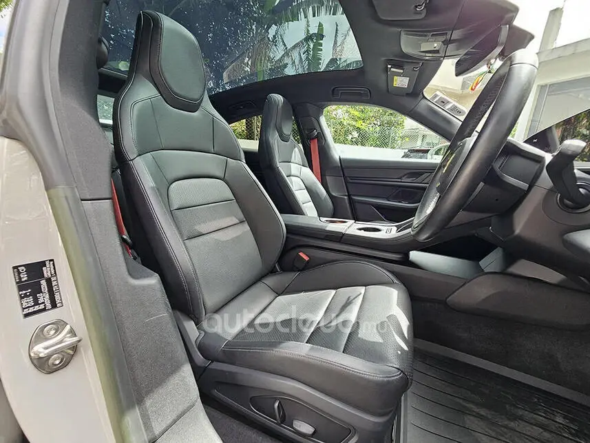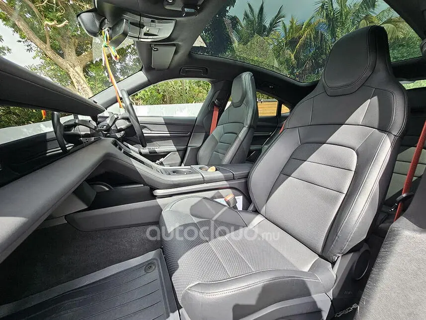 Equipped with Keyless entry – Start and stop button – Bluetooth – USB – AUX – Apple car play – Android Auto – Digital dashboard – Multi func p.s – Climate control – Adaptive Cruise control – Auto Hold – Park Assist including Surround View – Dynamic Select mode – Panoramic roof – Dual A/C – Rear A/C – Leather seats – Memory Seats – Power seats (8-Way) – Power mirrors – Power retractable mirrors – Power window – Led headlights – Day light – Electric boot – Alloy rims (21-Inch Mission E Design Wheels) – Isofix – Anti-lock Brakes – ABS – Anti-colision – Tire-pressure monitors – Traction control – Rear sensors – front sensors – Adaptive Air Suspension including Porsche Active Suspension Management (PASM) – 2-Speed Transmission on the Rear Axle – Porsche Surface Coated Brake (PSCB), Brake Calipers with White Finish – Privacy Glass – Seat Belts Bordeaux Red – BOSE Surround Sound System – Porsche Electric Sport Sound – Electric Charging Cover.